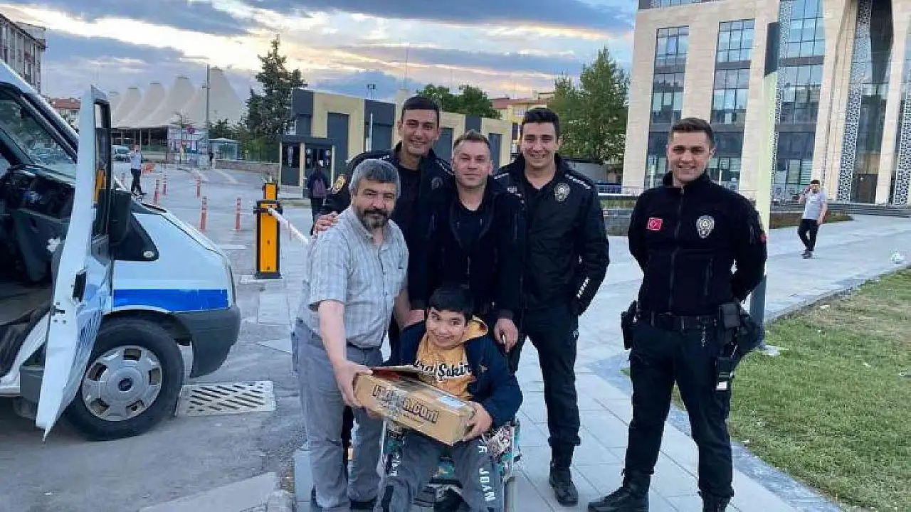 Kütahya'da Çevik Kuvvet polisleri özel çocuk Nurettin'in Karataş'ın hayali olan Play Station oyununu hediye ederek örnek bir davranışa imza attılar.