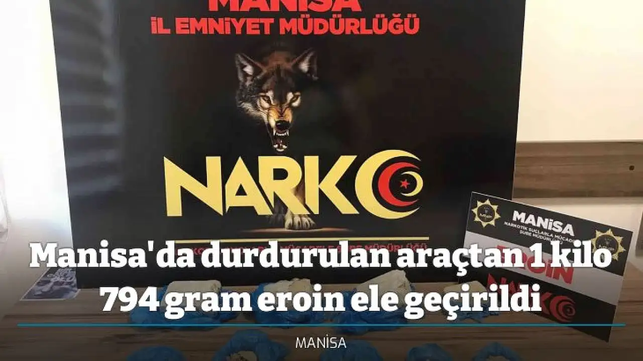 Manisa'da uyuşturucu ile mücadele çerçevesinde yürütülen çalışmalarda polis ekipleri, durdurduğu bir araçta 9 parça halinde 1 kilo 794 gram eroin maddesi ele geçirdi.