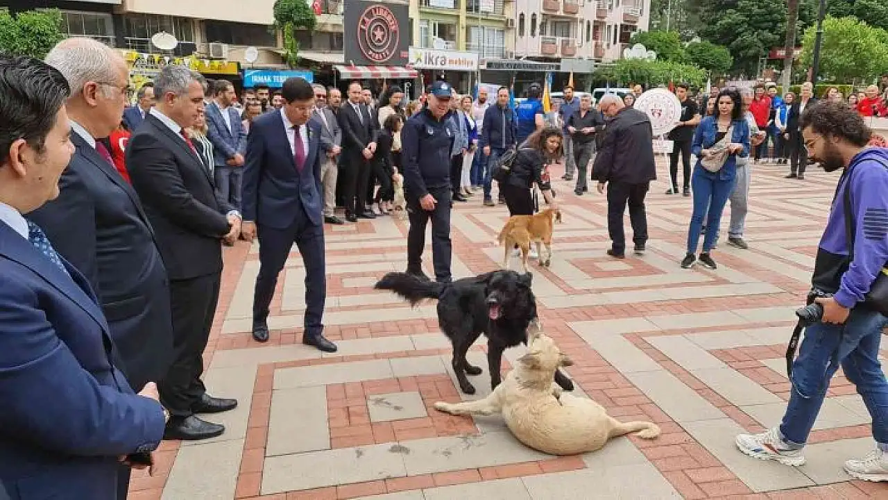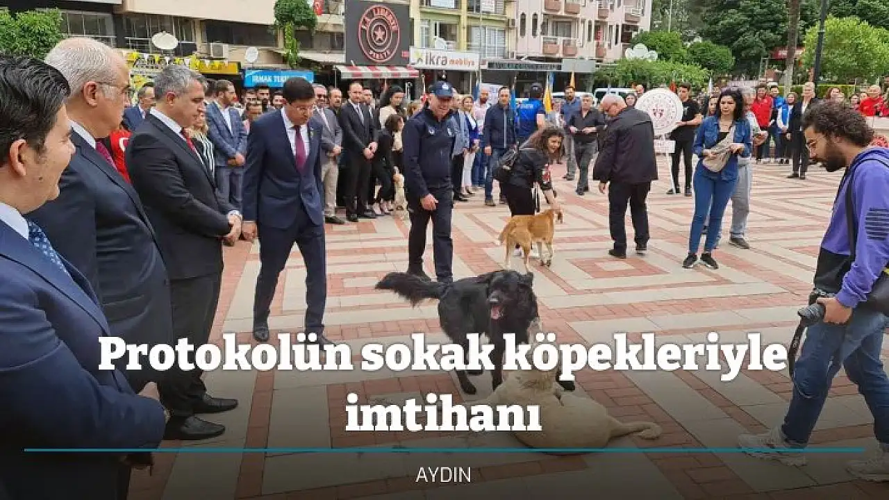 Aydın'ın Nazilli ilçesinde 19 Mayıs kutlamaları sırasında tören alanına gelen sokak köpekleri protokole ve alanda bulunanlara zor anlar yaşatırken, ilginç görüntüler oluştu.