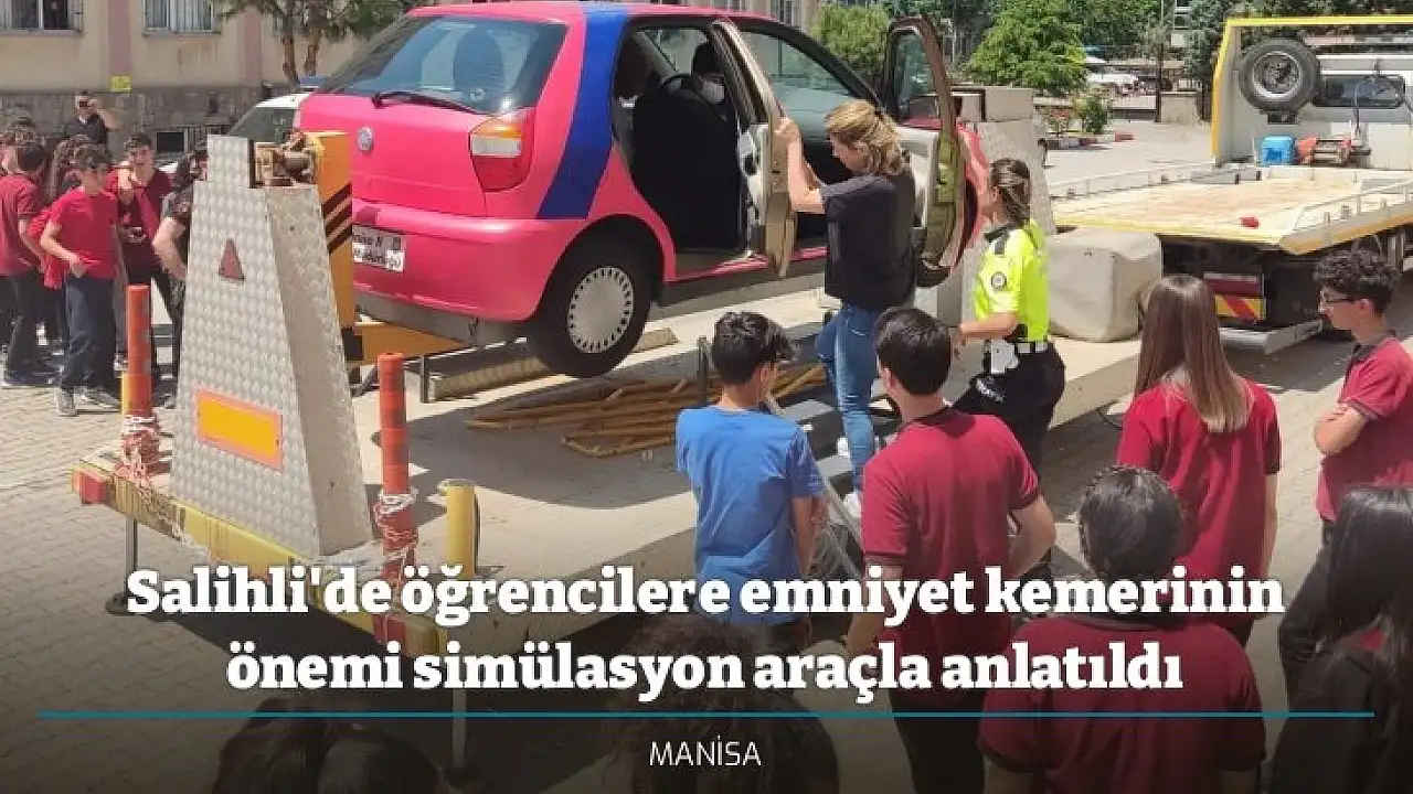 Manisa'nın Salihli ilçesinde polis ekipleri tarafından simülasyon araçla Türkbirliği Anadolu Lisesi öğrencilerine emniyet kemerinin önemini uygulamalı olarak anlattı.