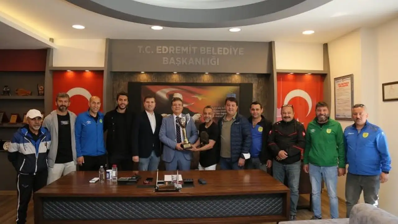Balıkesir Süper Amatör Ligde şampiyon olarak Bölgesel Amatör Lig’e yükselen 1966 Edremitspor ve Genç Edrolular taraftar grubu, Edremit Belediye Başkanı Selman Hasan Arslan’ı ziyaret ederek şampiyonluk kupasını takdim ettiler.