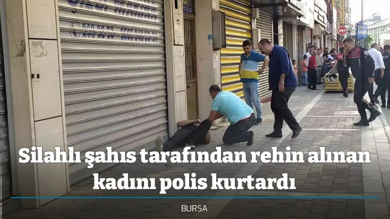 Bursa'da bir oteldeki kadını başına silah dayayıp rehin alan şahsı polis tarafından vurulup etkisiz hale getirildi. Polis tarafından kurtarılan rehine kadın şoka girerken silahlı saldırgan tedavi için hastaneye kaldırıldı.