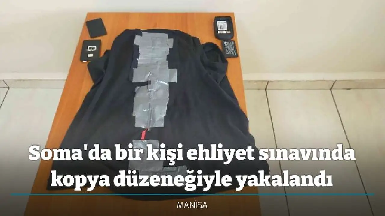 Soma’da Ehliyet sınavında kopya çekmek isteyen şahıs güvenlik araması sırasında yakayı ele verdi. Soma İlçe Emniyet Müdürlüğü Asayiş Ekipleri tarafından üzeri aranan şahsın tişörtünde yapıştırılmış düzenek çıktı. Üzerinin aranması sırasında kaçan şahıs ekipler tarafından kıskıvrak yakalandı. Yapılan aramalarda 1 adet kulak içi kulaklık, 1 adet WiFi cihazı, 1 adet mikrofon düzeneği, 1 adet tişörte yerleştirilmiş düğme kamera ele geçirildi. Olayla ilgili soruşturma devam ediyor.
