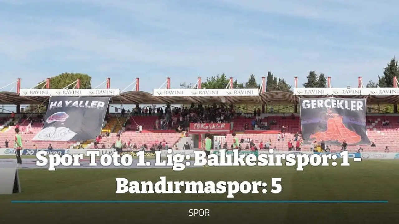 Spor Toto 1. Lig'in 36. haftasında Balıkesirspor, sahasında konuk ettiği Bandırmaspor'a 5-1 mağlup oldu.