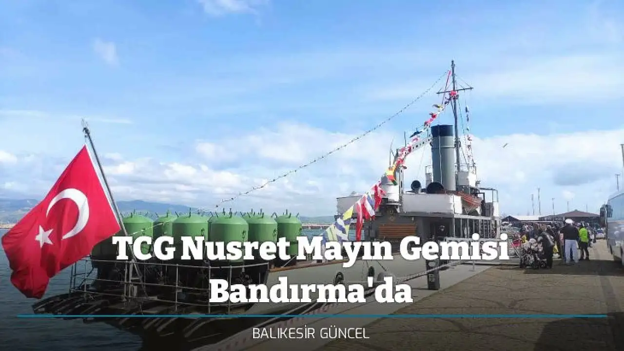 Çanakkale Deniz müzesi komutanlığı emrinde bulunan TCG Nusret Mayın gemisi Çanakkale İstanbul seferinde Bandırma limanına demir atarak konuklarını bekliyor. TCG Nusret mayın gemisi 9-10- Mayısta demirli bulunduğu Bandırma İskelesinde saat: 10:00 12:00 / 14:00-18:00 saatleri arasında halkın ziyaretine açık olacak.