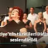 Didim Belediyesi'nin katkıları ile Didim Türkü Grubu tarafından düzenlenen Türkü Türkü Türkiyem konserine Didimliler ile yerli ve yabancı turistler yoğun ilgi gösterdi.