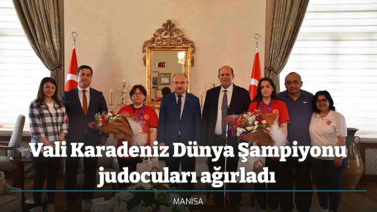 Fransa'da düzenlenen Okul Sporları Judo Dünya Şampiyonasında 70 kiloda altın madalya kazanan Sümeyye Kaya ile +70 kiloda altın madalya kazanan Hediye Nur Çakıcı, Manisa Valisi Yaşar Karadeniz'i ziyaret etti.