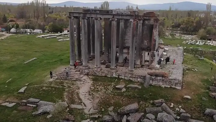 Kütahya'nın Çavdarhisar ilçesinde bulunan Aizanoi Antik Kenti, ilkbahar manzaralarıyla ayrı bir güzelliğe büründü.