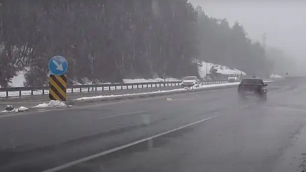 Karayolları ekipleri Bolu Dağı güzergahında kar küreme ve tuzlama çalışmalarını aralıksız olarak sürdürüyor. Sürücüler takip mesafelerini korumaları ve hız yapmamaları konusunda ışıklı tabelalar ve polis ekipleri tarafından uyarılıyor.