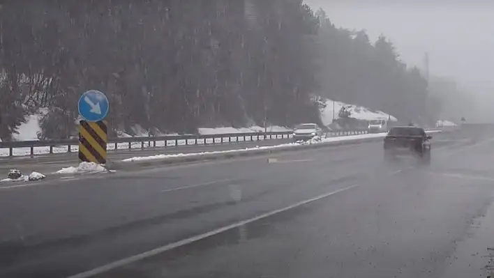 Bolu'da sabah saatlerinden itibaren etkili olan sağanak yağış, Bolu Dağı geçişinde yerini kar yağışına bıraktı.