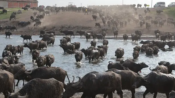 Bölgede bulunan yaklaşık 5 binin üzerindeki manda sürüsü sabah erken saatlerde meraya salınırken, mandaların akşam eve dönüş saatlerinde renkli görüntüler oluştu. Balıklı kırsal mahallesinde mera ile mahalle arasında bulunan dereden geçerek ahırlarına dönen manda sürüsü Afrika’daki öküz başlı antilopların büyük göçünü hatırlattı. Mahalle sakinleri sahip oldukları mandaların eve dönüşlerini dere kenarında bekleyip, ahırlarının yolunu bilen mandalara eşlik ediyor. Mahalle sakinleri mandaların dereden geçişlerini izleyerek vakit geçiriyor.