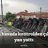 Yağışlı havada kontrolden çıkan tır yan yattı