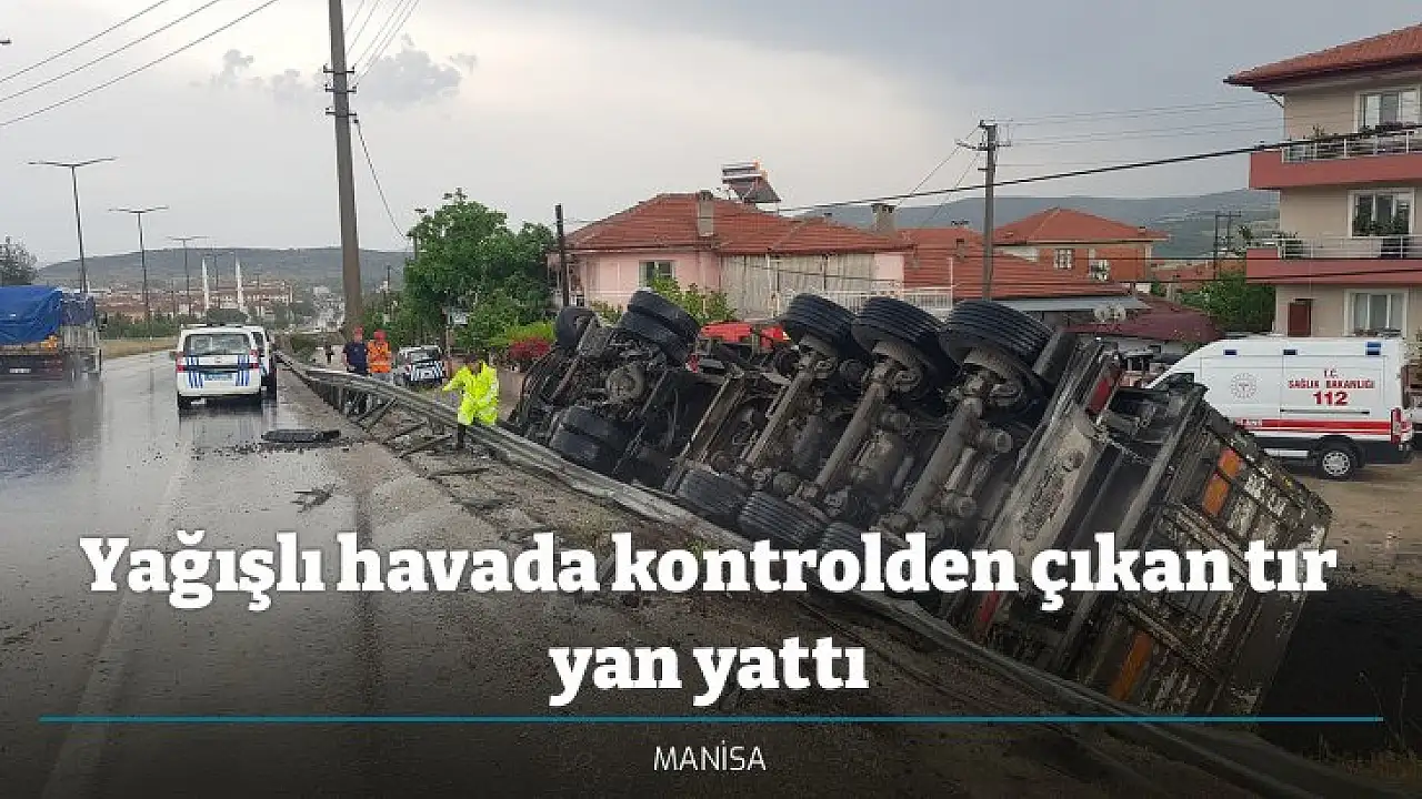 Manisa'nın Kula ilçesinde yağışlı havanın da etkisiyle kayganlaşan yolda kontrolden çıkan kömür yüklü tır yan yattı.