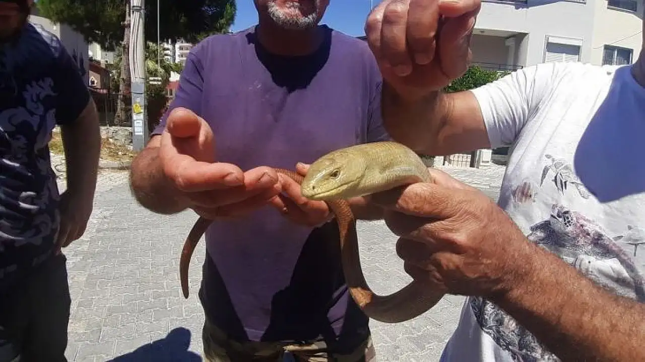 Her geçen gün yaşam alanları azalan yılan görünümlü oluklu kertenkele Aydın'ın Kuşadası ilçesinde bir hayvanseverin dikkati sayesinde ezilmekten kurtarılarak, doğal ortamına salındı. ,