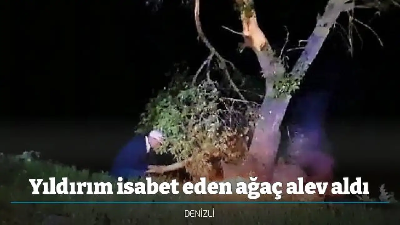 Denizli'nin Buldan ilçesinde ormanlık alana düşen yıldırımın isabet ettiği ağaç alev alev yandı. Alev topuna dönen ağacı fark eden vatandaşlar, ellerine geçirdikleri malzemelerde yangına müdahale edip olsası felaketi önledi.