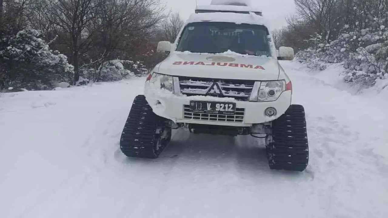 Balıkesir'de yoğun kar yağışı nedeniyle kırsal mahallelerde yaşanan sağlık sorunlarına İl Sağlık Müdürlüğü'ne bağlı 112 Acil Sağlık Ekipleri paletli ambulansla çare oluyor.